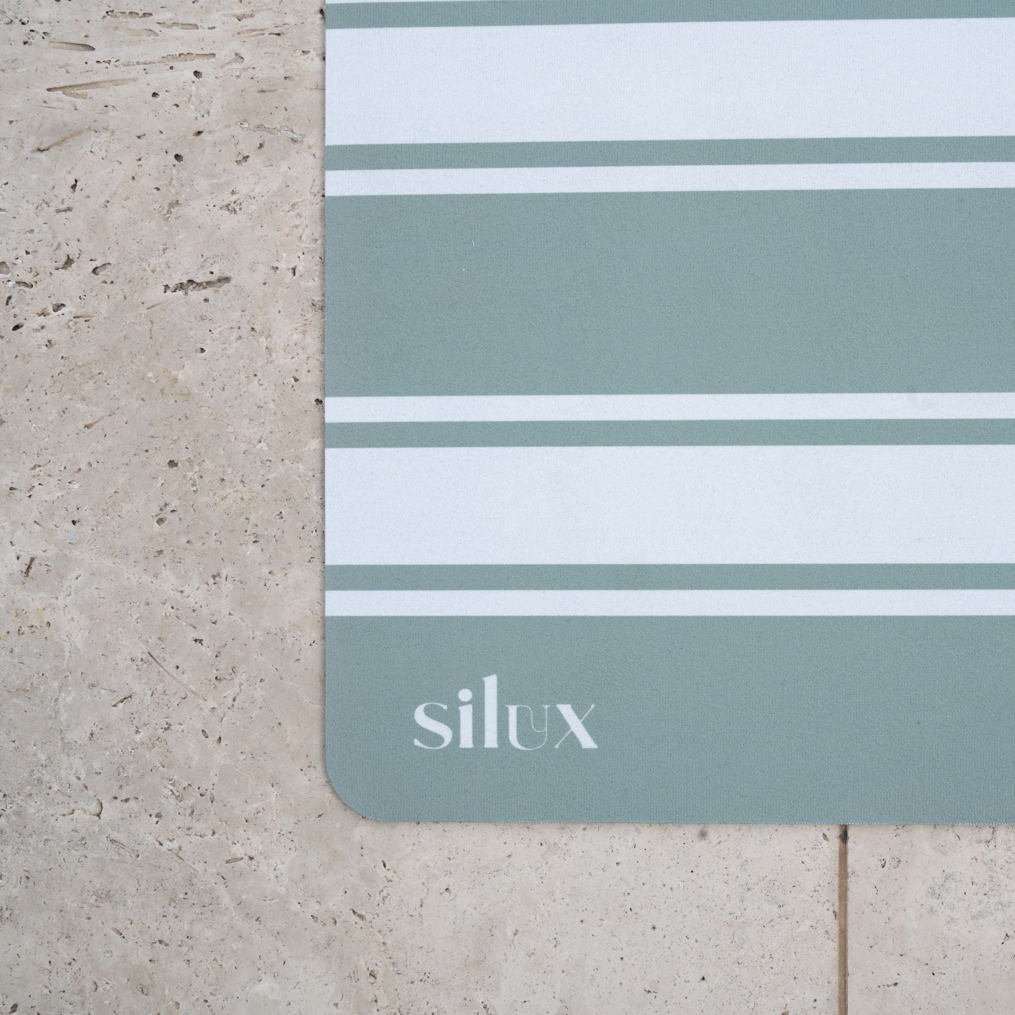 Soft, coastal, and quietly elevated. The Soaks Absorbent Mat brings effortless calm to any space — from bathrooms to poolside to the back door. Available in Sand, Sage, and Charcoal, each colourway is designed to complement modern, relaxed interiors with subtle stripes and signature Silux tones.